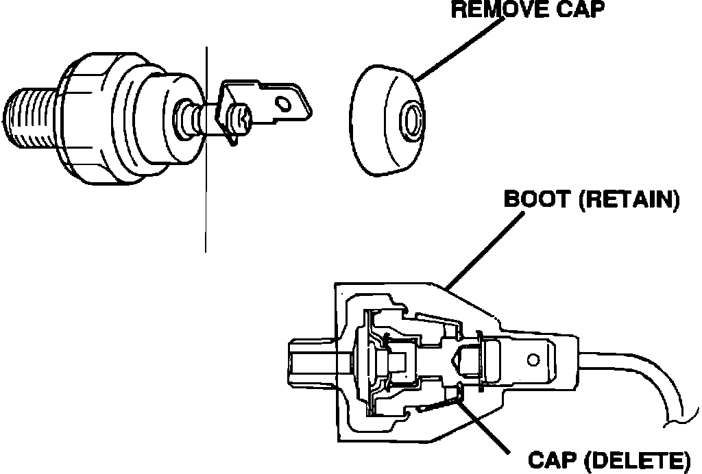 Disconnect the oil pressure switch wire and remove the cap. Reconnect the wire onto the pressure switch. If the condition remains follow the procedure outlined in the shop manual.