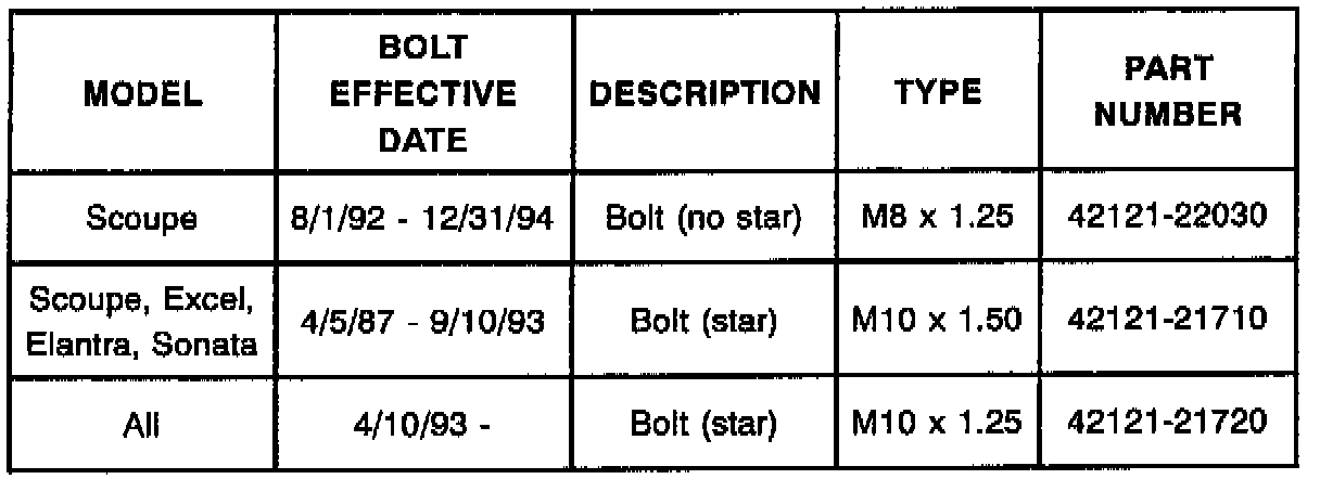 Scoupes produced after 8/1/92 do not use a bolt with a star pattern. These transaxles are shipped with the bolts installed in the torque converter.