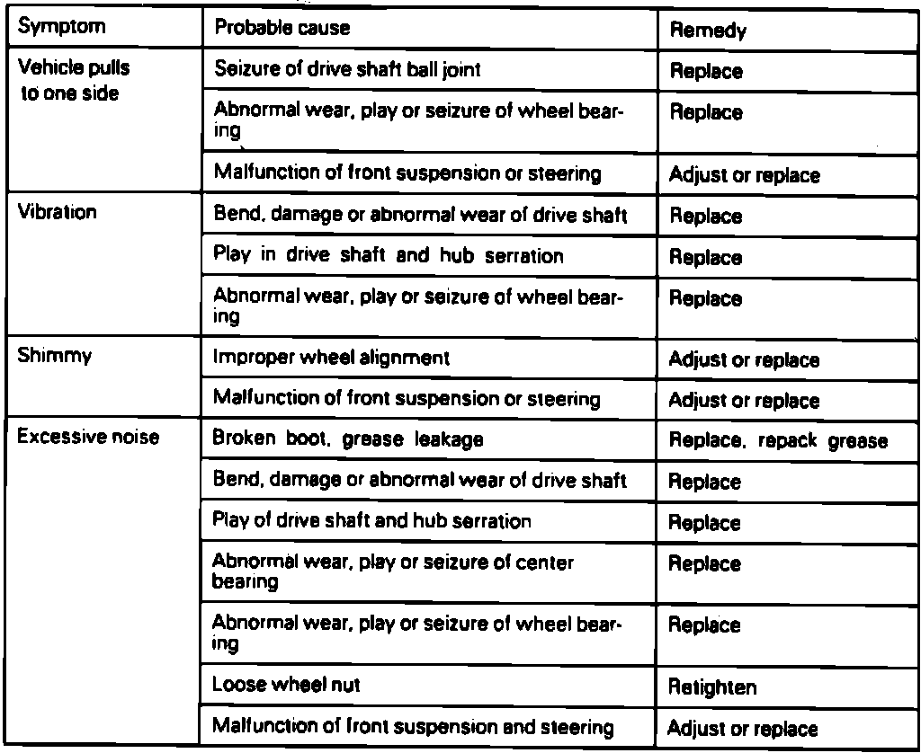 Troubleshooting Front Wheel Drive: