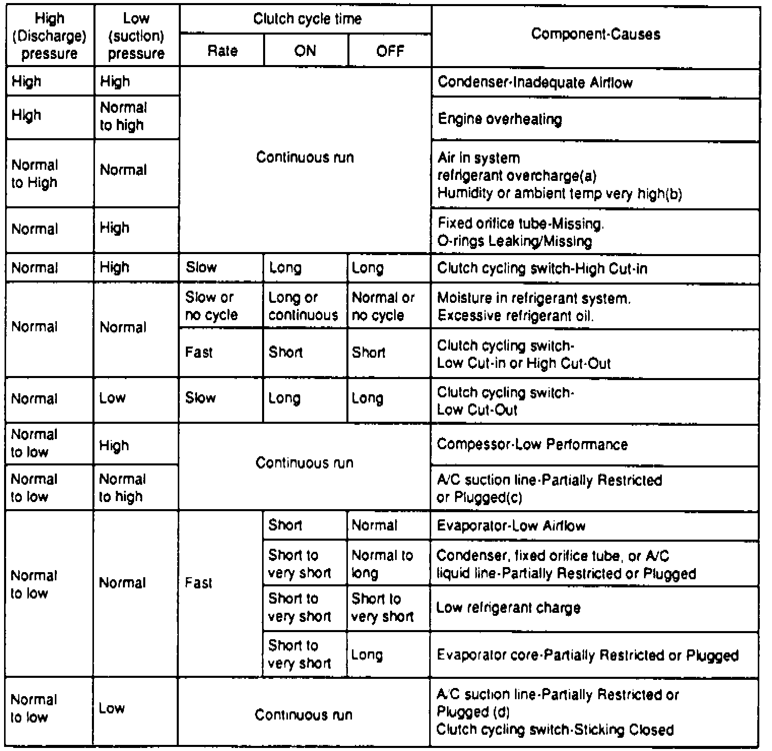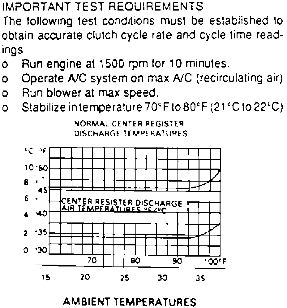 1. Install manifold gauge set.2. Run engine at 1500 RPM for ten minutes and set controls for Max A/C with high blower speed.