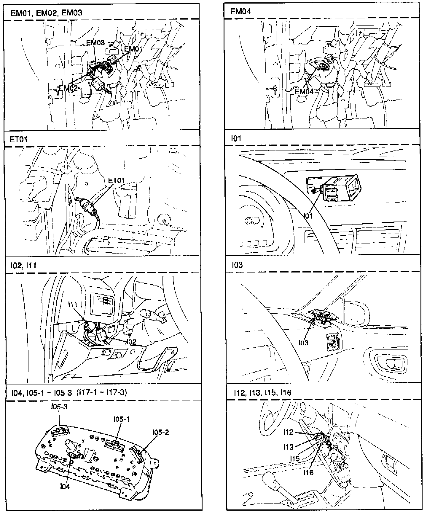 Component Locations: EM01 Thru I17-3:
