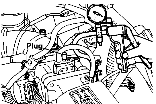 1. Disconnect the red striped vacuum hose from the throttle body and connect a hand vacuum pump to the hose and plug the nipple.