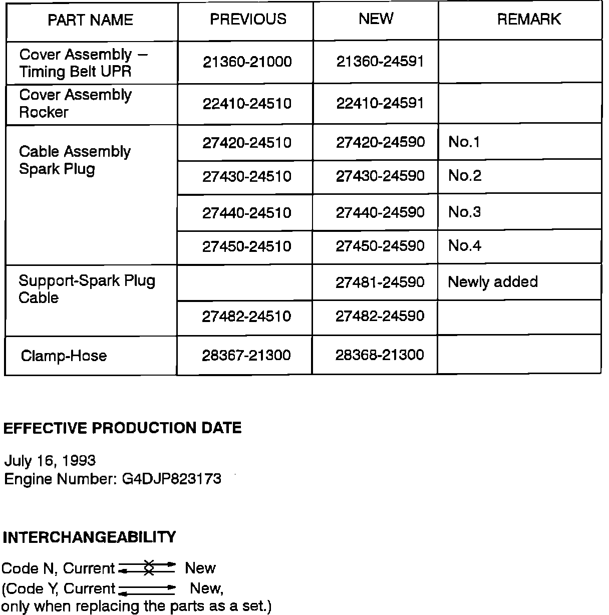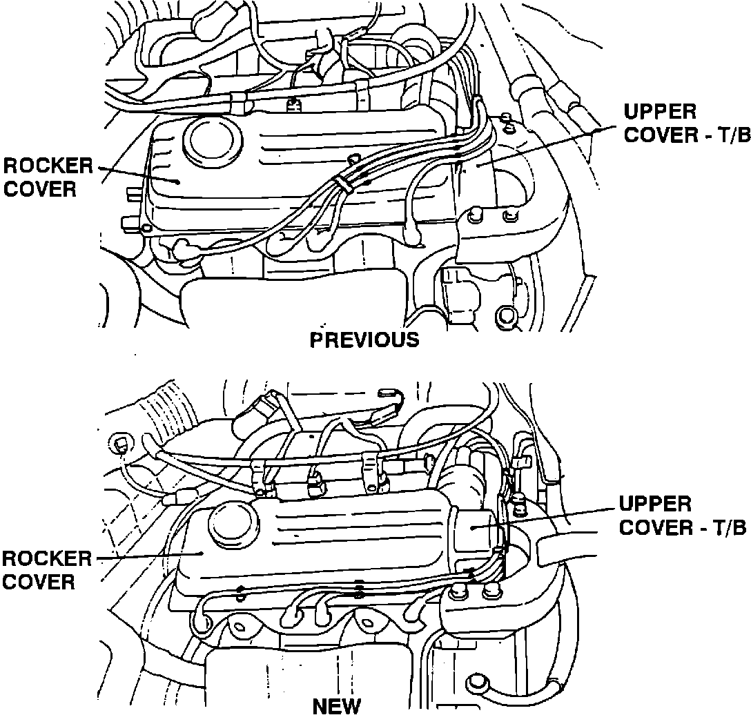 The routing of the Excel spark plug cable has been changed. The spark plug cables previously were routed over the rocker cover, but now have been routed to the side of the rocker cover as shown.