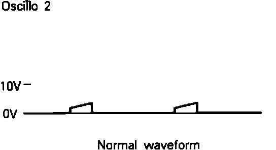 4. Connect the scope probe to terminal 3 shown in the system schematic diagram and compare the power transistor control signal to the pattern shown.