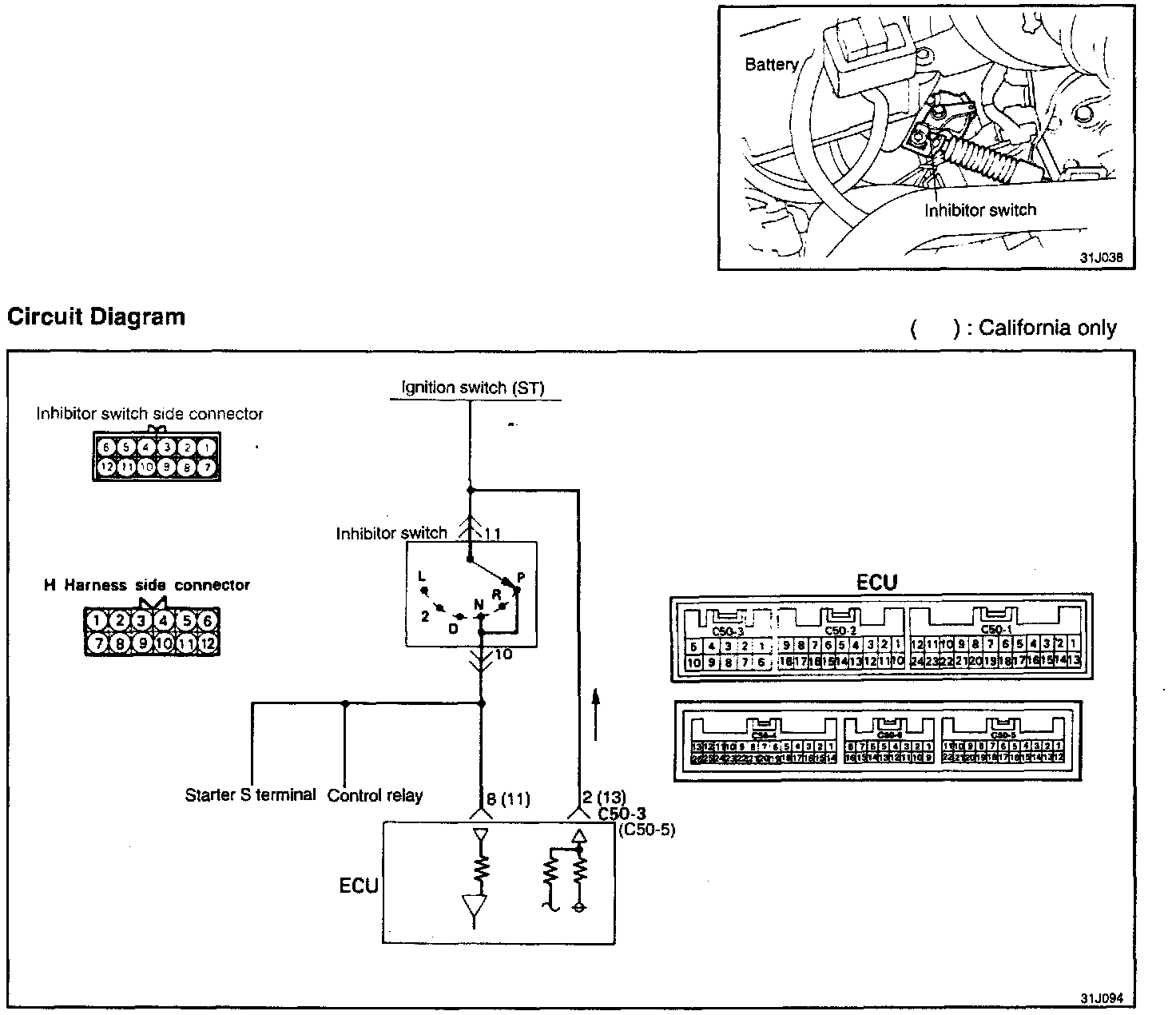 Gear Selector Position Switch (Inhibitor Switch) Circuit: