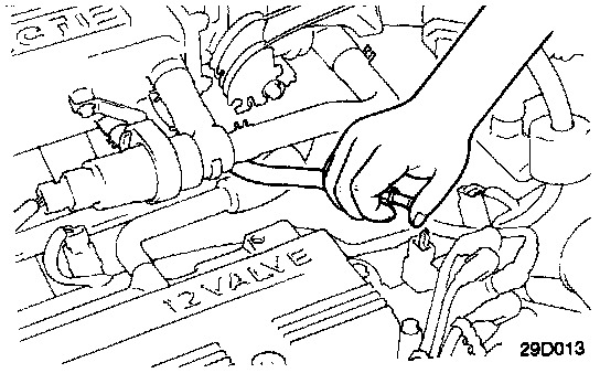 1. Disconnect the ventilation hose from the positive crankcase ventilation valve. Remove the positive crankcase ventilation valve from the rocker cover and reconnect it to the ventilation hose.