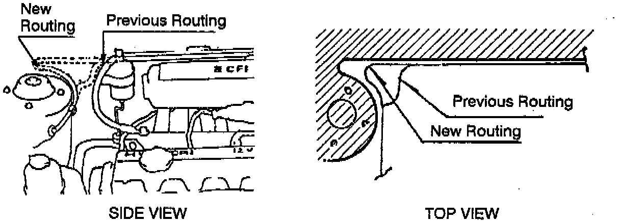 The routing of the brake tube from the proportioning control valve to the right front brake hose has been changed to provide more working clearance in the engine compartment.