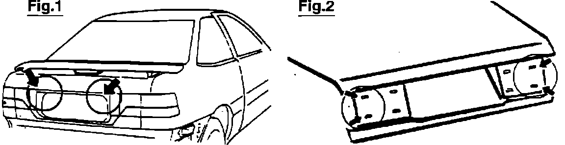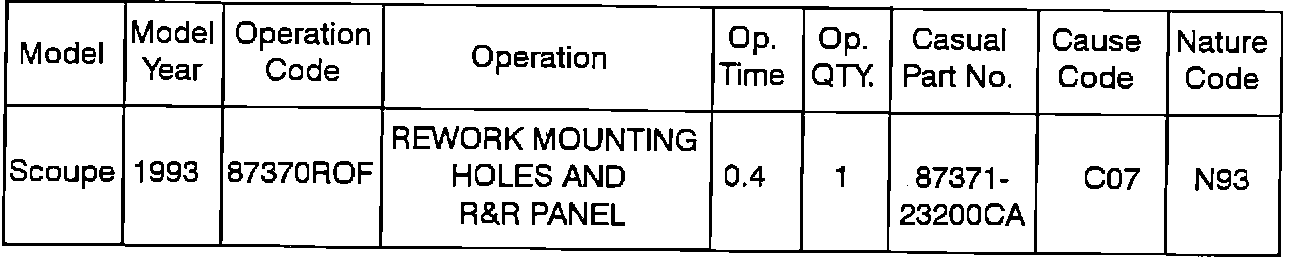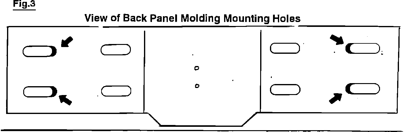 The back panel molding on '93 Scoupe vehicles may crack in the upper inside corners of the lamp lenses (see fig. 1). Cracking may result from misaligned back panel molding mounting holes, specifically the two outer holes on the left and right sides (4 holes in total) of the body panel (see fig. 2).