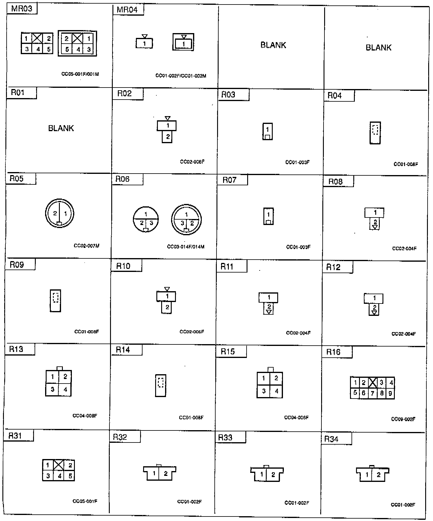 Connector Identification: MR03 Thru R34: