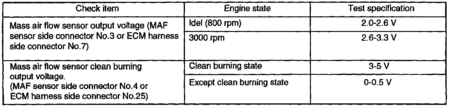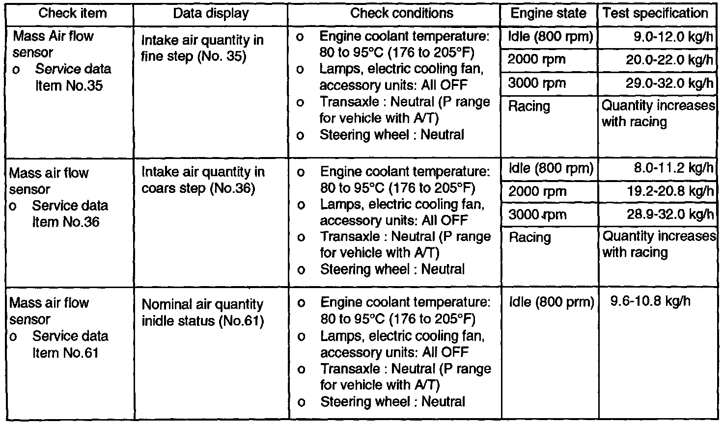 NOTE: When the vehicle is new (within initial operation of about 300 miles), the mass air flow sensor air quantity may be about 10% higher.