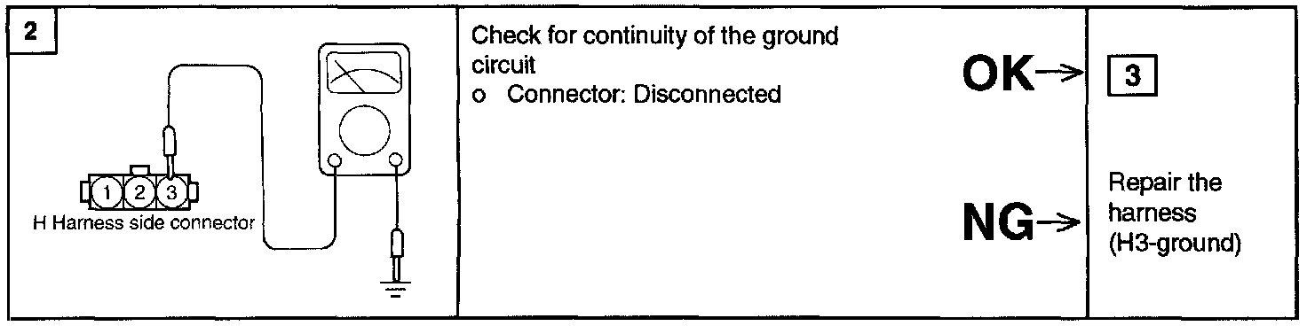 3. Connect a pointer type ohmmeter between terminal 3 (sensor ground) and terminal 1 (sensor output).