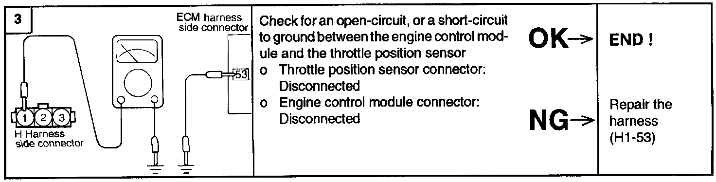 5. If the resistance is out of specification, or fails to change smoothly, replace the throttle position sensor.