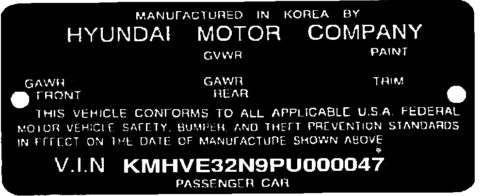 12. After completing all mechanical repairs and confirming vehicle operation, make a punch mark over the last digit of the VIN number on the vehicle plate located on the left B-pillar as shown in illustration. Use a center punch and a small hammer.