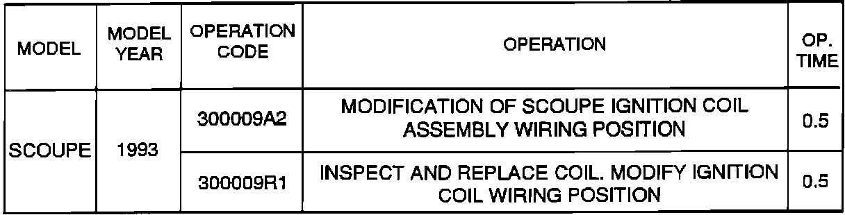 This Technical Service Bulletin describes the procedure for the inspection, repair and if necessary, replacement of the ignition coil assembly on 1993 Scoupes.