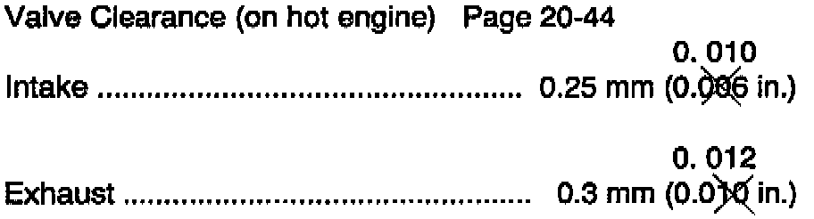 Valve Clearance - Manual Update
