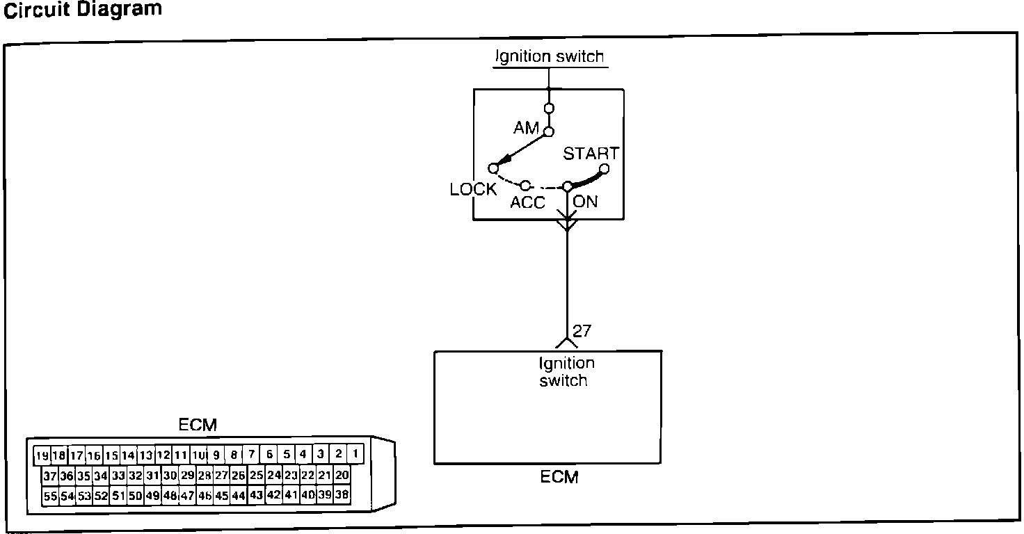 The ignition switch supplies "On" and "Start" information to the ECM to position the idle speed control components. The ignition switch "ON" signal is provided to the ECM through the control relay.