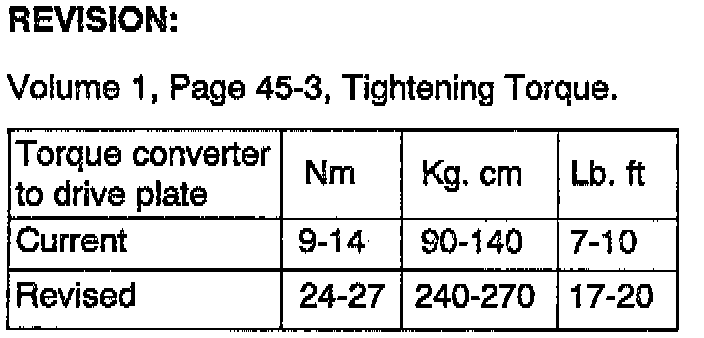 This bulletin makes the following revisions to the 1993 Scoupe Shop Manual Automatic Transaxle Drive Plate Torque Specifications:
