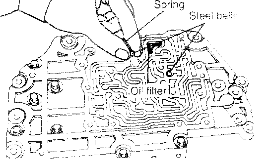 6. Remove the relief spring, two steel balls and oil filter from the intermediate plate.