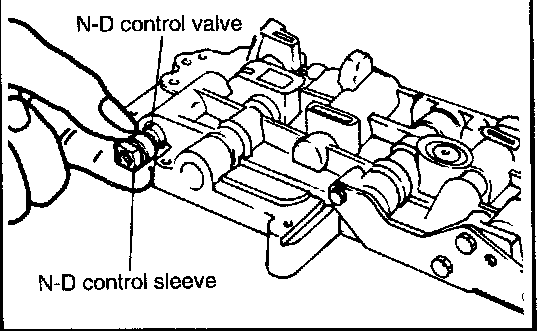 18. Remove, from the rear side of the upper valve body, the N-D control sleeve and the N-D control valve.