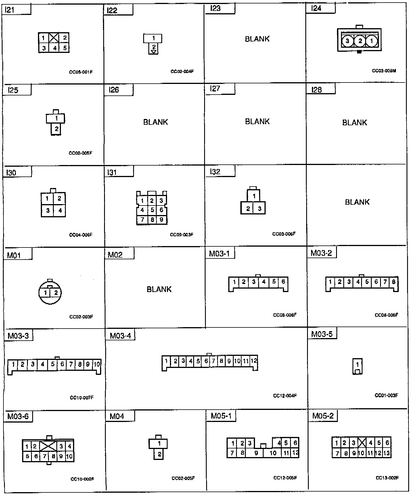 Connector Identification: I21 Thru M05-2: