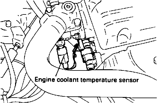 The engine coolant temperature sensor is in the intake manifold under the thermostat housing, on the left side of the engine.