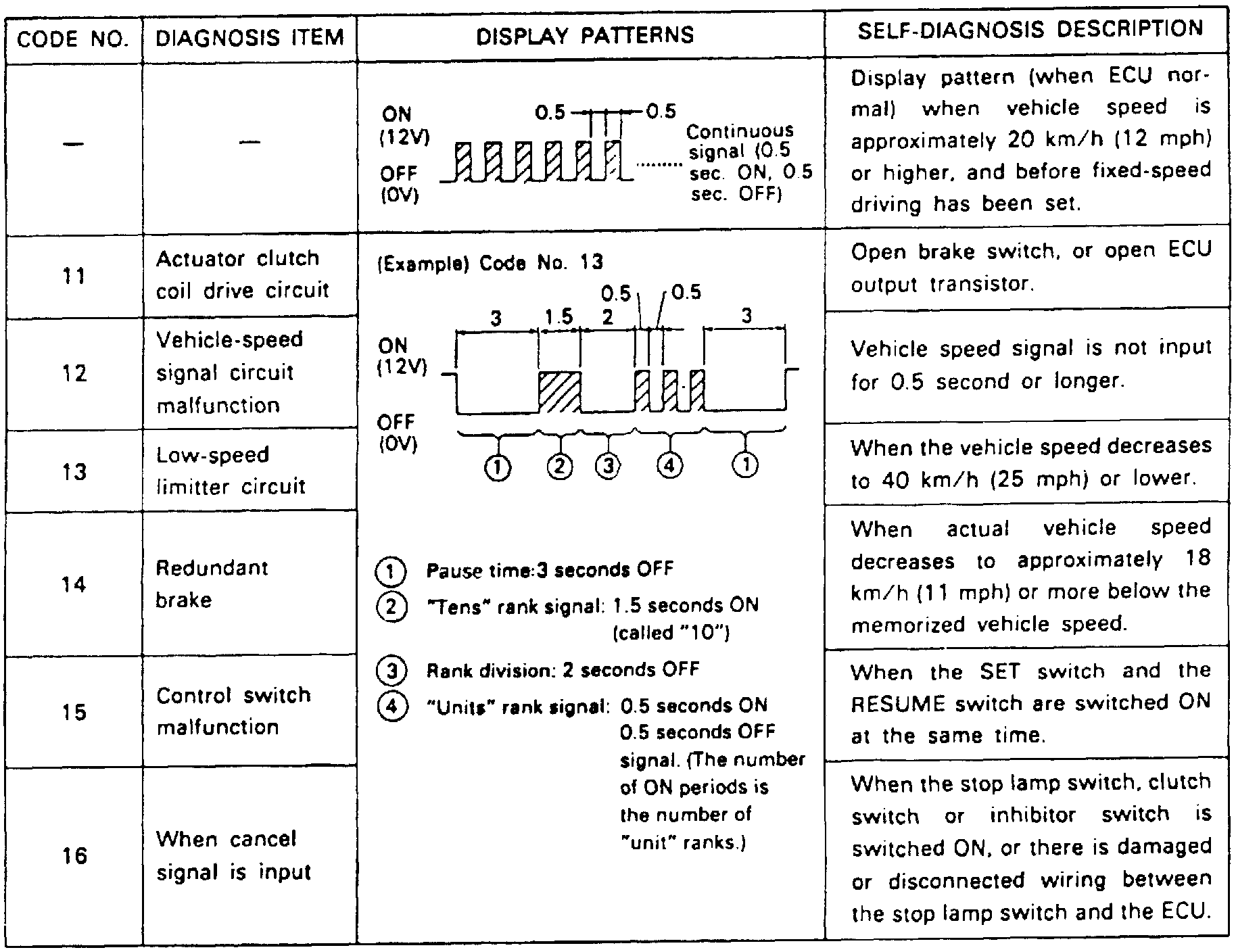 Fig. 3 Speed Control Self-Diagnosis Description & Display Chart: