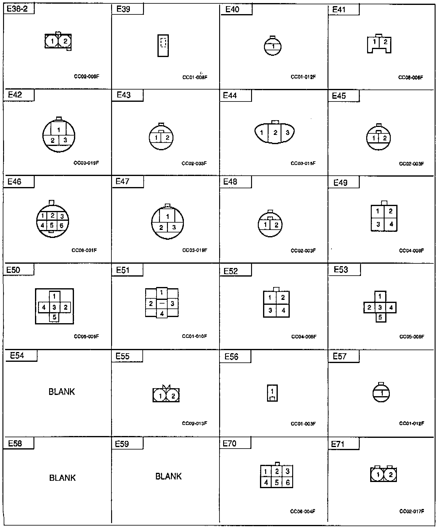Connector Identification: E38-2 Thru E71: