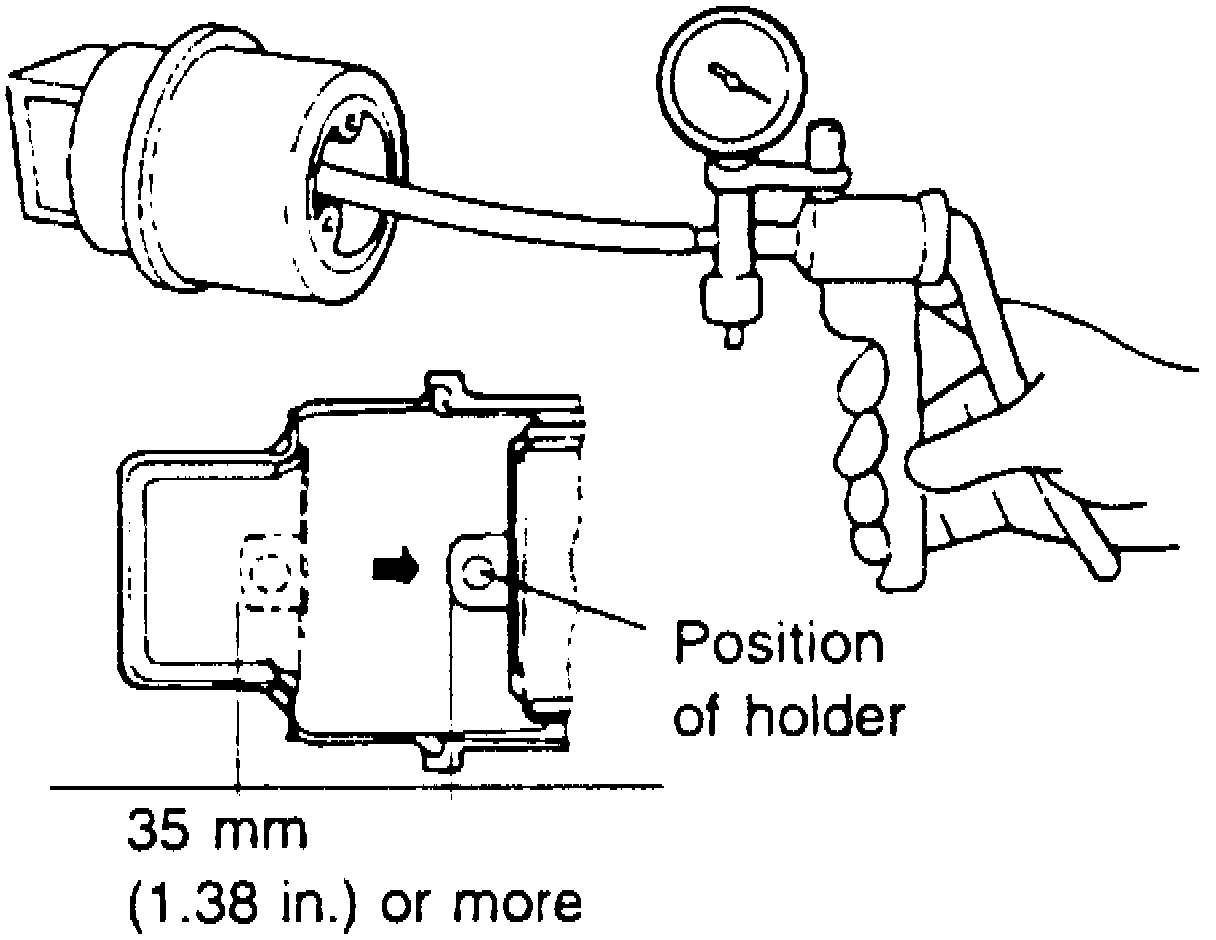 Remove the actuator and apply negative pressure to the actuator with a vacuum pump, ensure the holder moves more than 1.38 inches, Fig. 10. In addition, ensure there is no change in the position of the holder when negative pressure is maintained, then inspect and adjust the speed control cable.