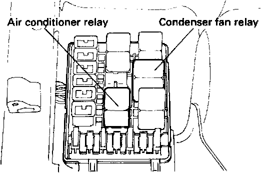 AIR-CONDITIONER RELAY, AND CONDENSER FAN RELAY.