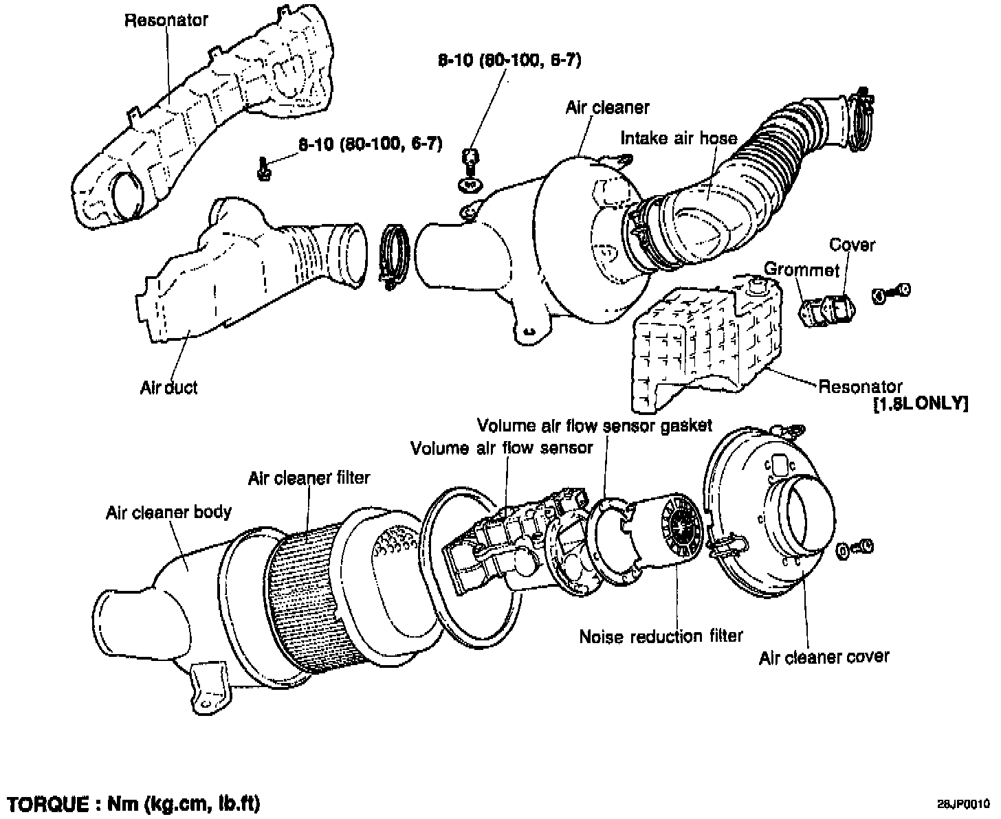 1. Remove the intake air hose and air duct connected to the air cleaner, and the resonator.