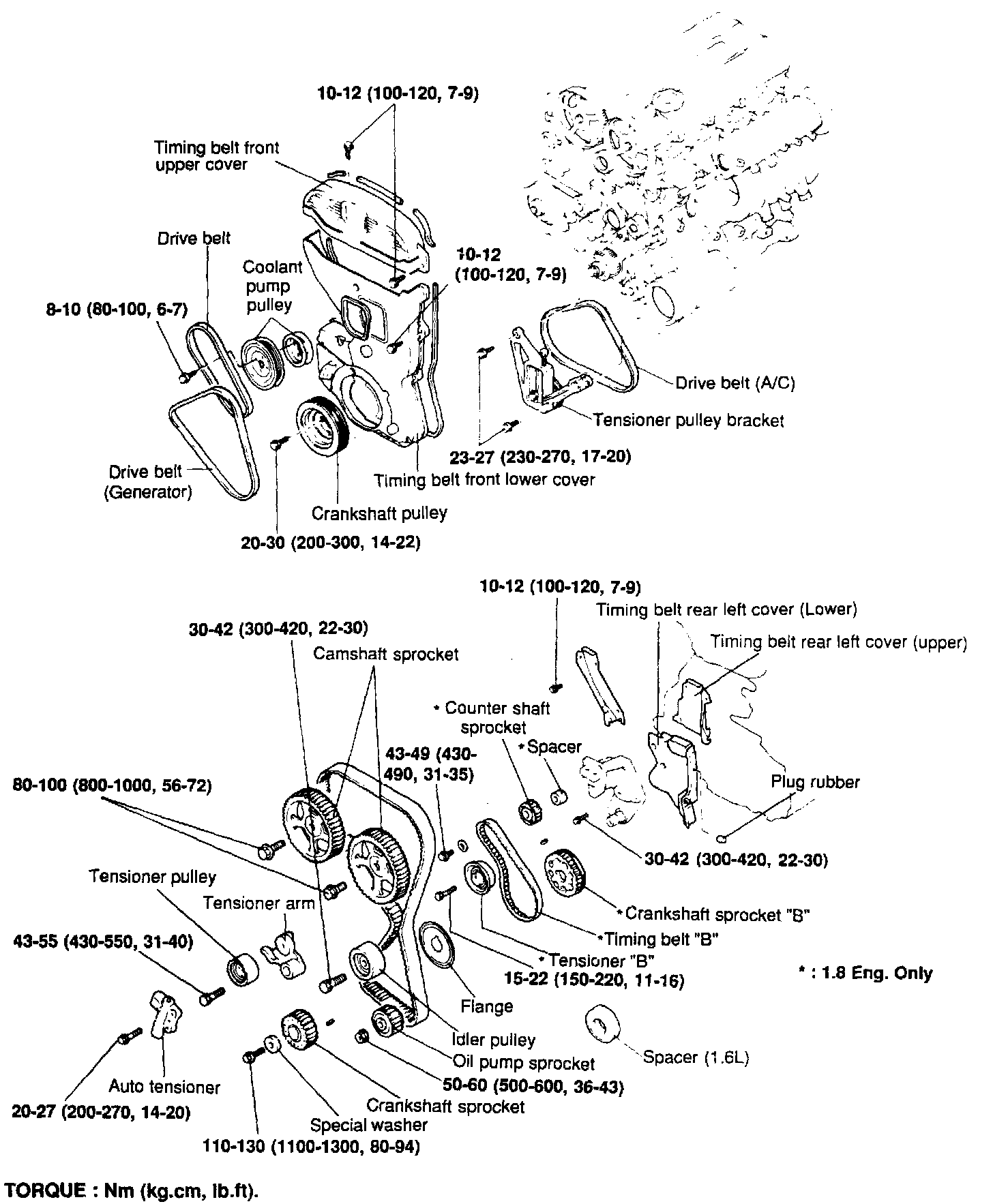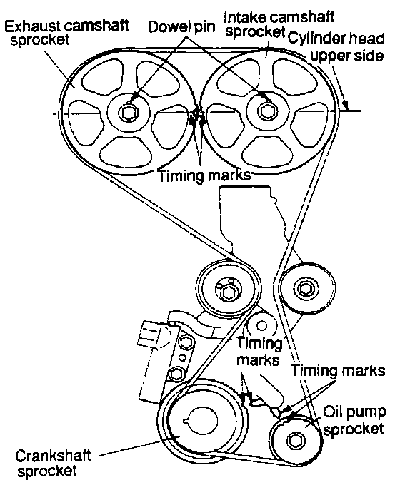 Note: If the timing belt is reused, make an arrow mark Indicating the turning direction (or the front of the engine) to make sure that the belt is reinstalled in the same direction as before.