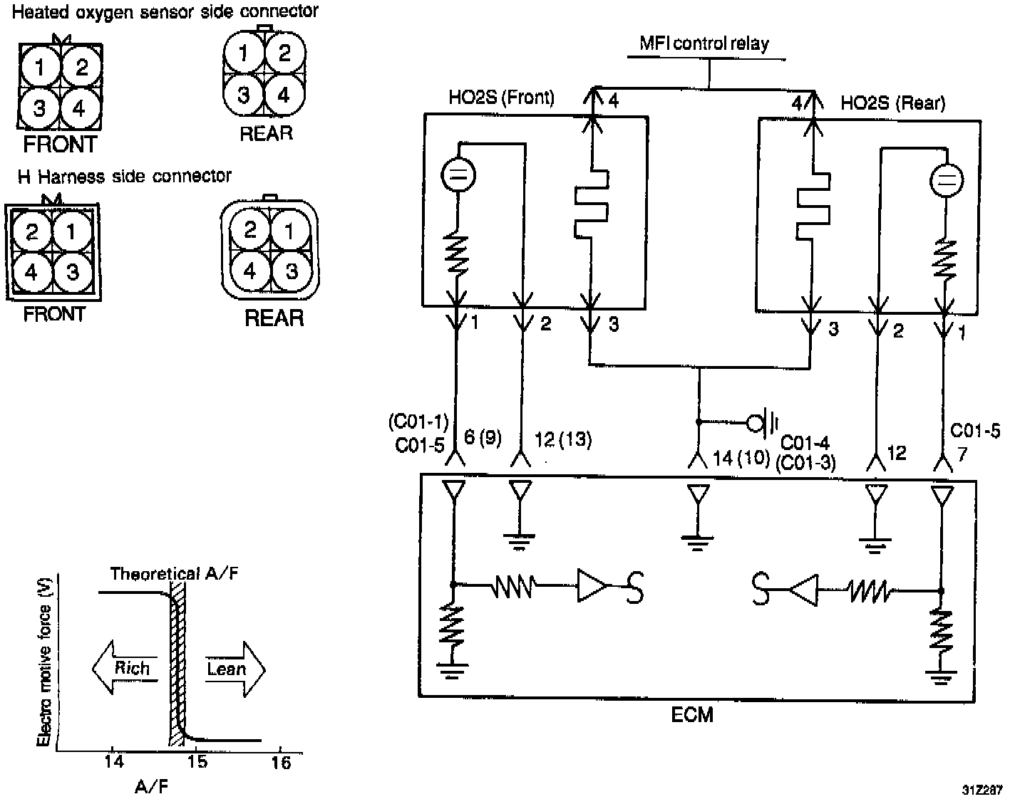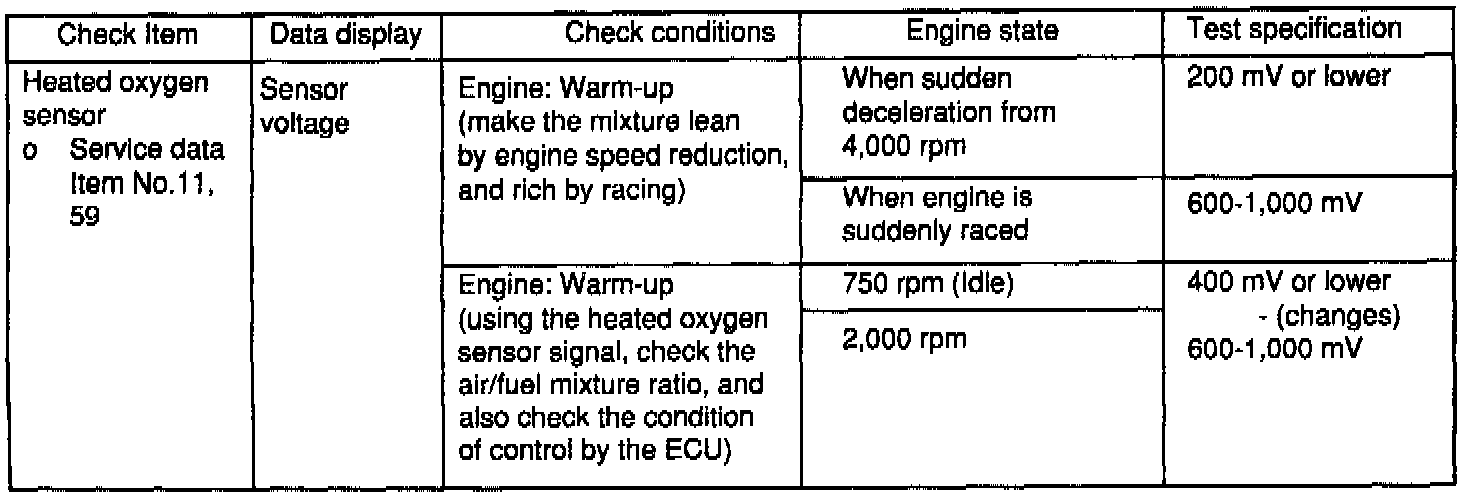- If the HO2S check has resulted normal but the sensor output voltage is out of specifications, check for the following items related to air fuel ratio control system.