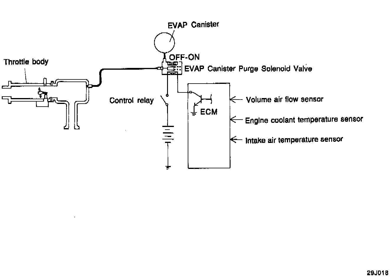 1. Disconnect the vacuum hose from the intake manifold purge hose nipple and connect a hand vacuum pump to the nipple.