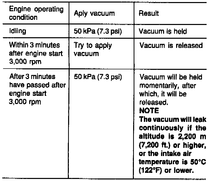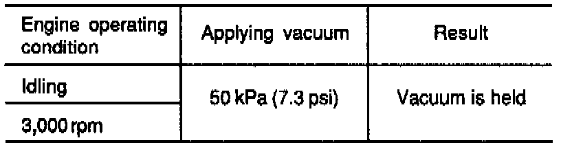 2. Start the engine and check to see that, after raising the engine speed by racing the engine, vacuum remains fairly constant.
