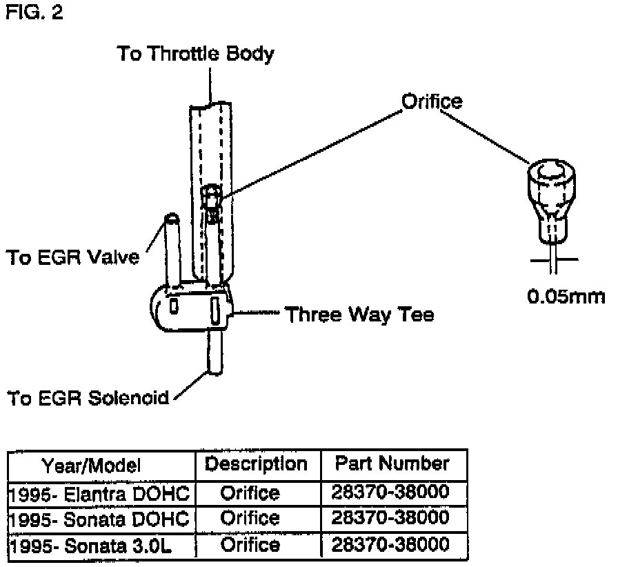 II. Remove & replace Orifice. SEE FIG. 2 for Orifice location. (see table below for part number).