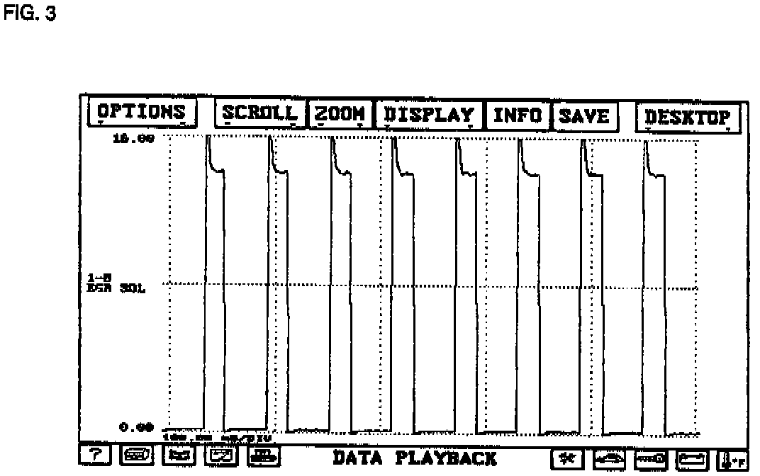 You should observe a Duty Cycle, (12 to 16 volt square wave, SEE FIG. 3). If no Duty Cycle is observed, the EGR Solenoid is not being grounded by the the ECM. Before replacing the ECM, run a current draw test on the EGR Solenoid using HDS SWEEP TEST. If current draw exceeds 42O Diagnostic (M)Amp, replace EGR Solenoid and retest.
