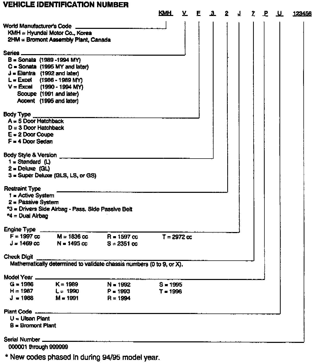 This bulletin provides information concerning the vehicle identification number of all Hyundai vehicles.