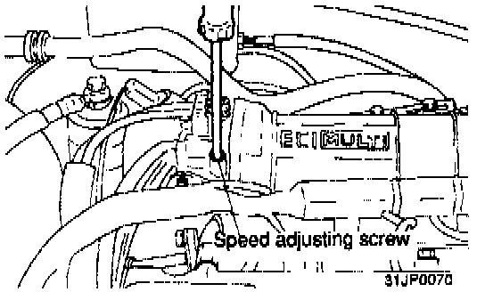 8. If the basic idle speed is out of specification, adjust by the speed adjusting screw for the standard rpm. In adjusting use a tachometer.