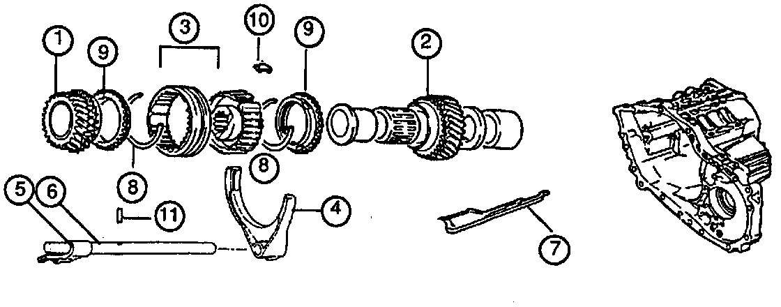 If a vehicle produced after the production change date has a 2nd to 3rd gear clash, do not install the whole kit. Order and install parts 1, 2, 3, 8, 9, and 10 from the list shown above.