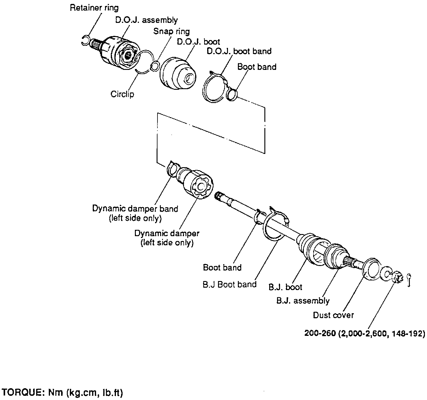 8. Remove DOJ and BJ boots. If boots can be reused, wrap vinyl tape around driveshaft spline so that boots are not damaged as they are removed.