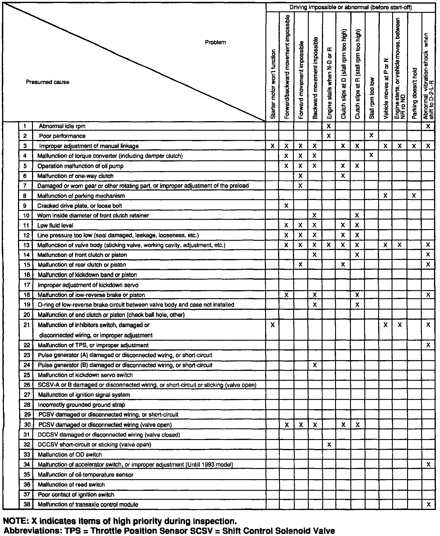 Malfunctions of the auto transaxle can lead to other problems, such as those described below: