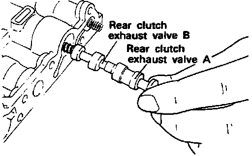 16. Remove the rear clutch exhaust valves A and B as well as the rear clutch exhaust spring.