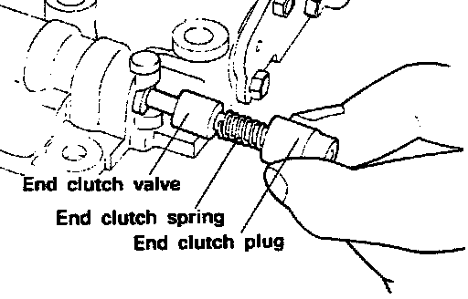 24. Remove the end clutch valve plug~ end clutch spring, and end clutch valve.
