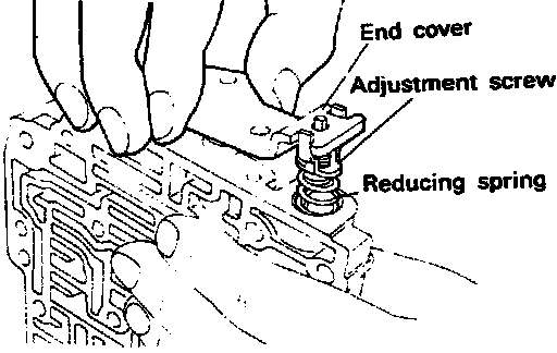 25. Remove the three bolts from the lower valve body, and then remove the end cover, adjustment screw, and reducing spring.