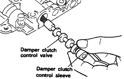 2B. Remove the damper clutch control sleeve, damper clutch control valve, and the damper clutch control spring.