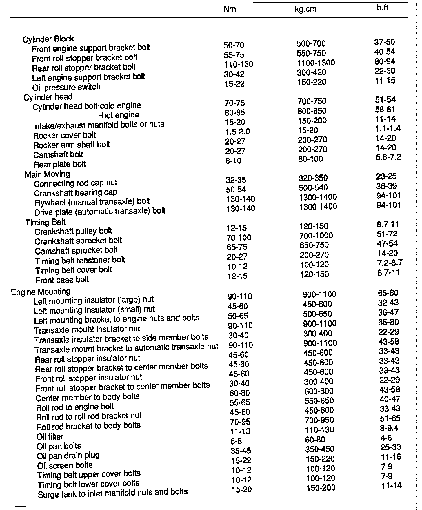 Excel L4-1468cc 1.5L SOHC (8 VALVE)