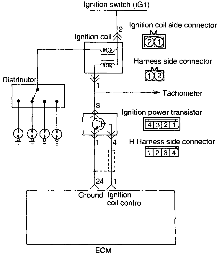 When the ignition power transistor is turned ON by the signal from the engine control module, primary current is shut off and a high voltage is induced in the secondary coil.