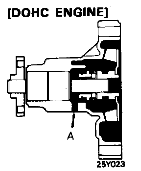 4. Check for engine coolant leakage. If engine coolant leaks from hole "A", seal unit is defective. Replace engine coolant pump assembly.