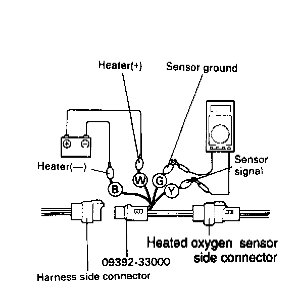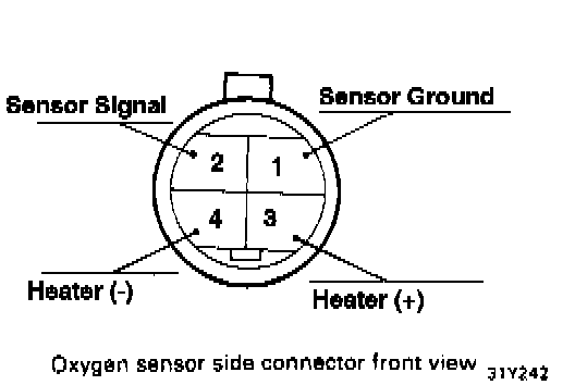 1. Disconnect the oxygen sensor connector, and measure the resistance between terminal 3 and terminal 4.