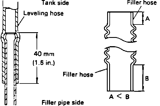 4. Connect the leveling hose, from the tank, approximately 1.6 in. (40mm) onto the filler neck.